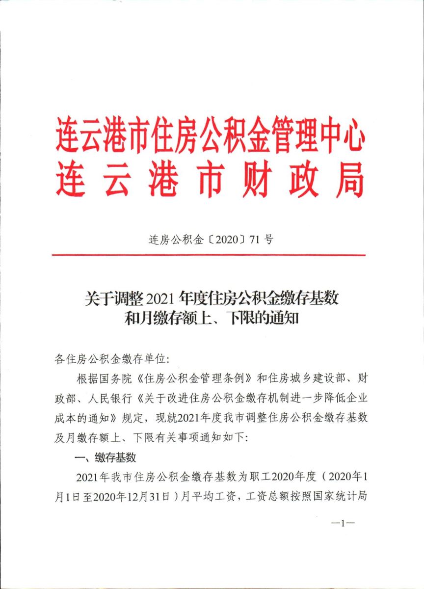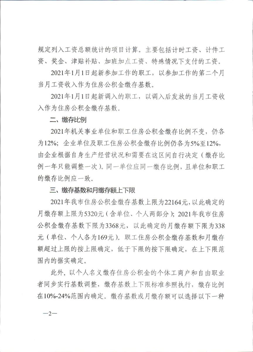 关于调整2021年度住房公积金缴存基数和月缴存额上、下限的通知