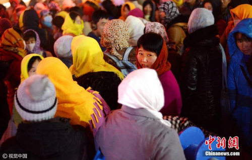 资料图 山东省济南市,多名农民工聚集在路口处,站在寒风中寻找工作。 御宁 摄 图片来源:视觉中国