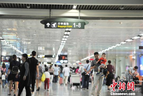 资料图 图为海口美兰机场到达大厅迎来大量进港旅客。 楚洪雨 摄